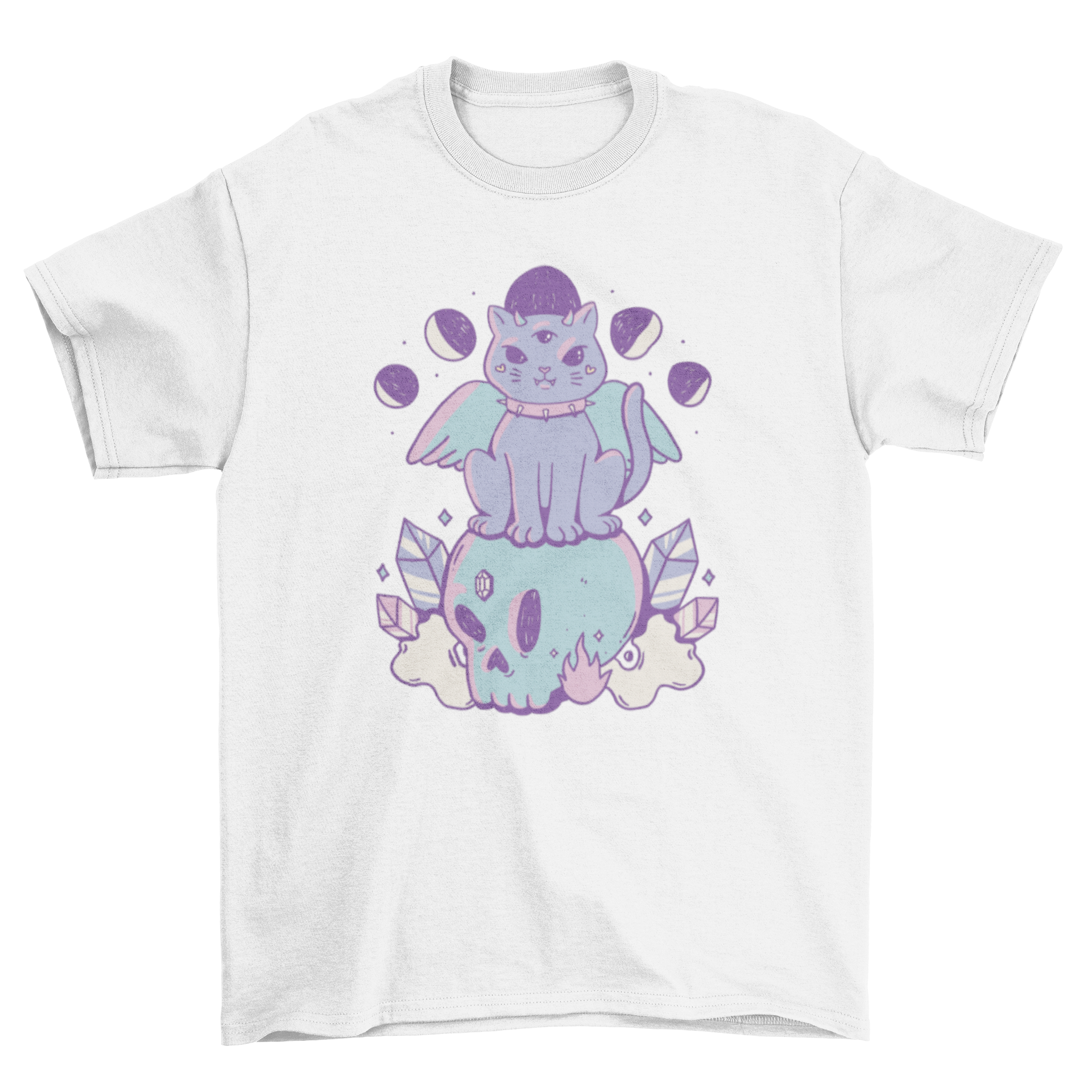 Check this lovely pastel goth cat t-shirt design with crystals, a skull and the moon phases!