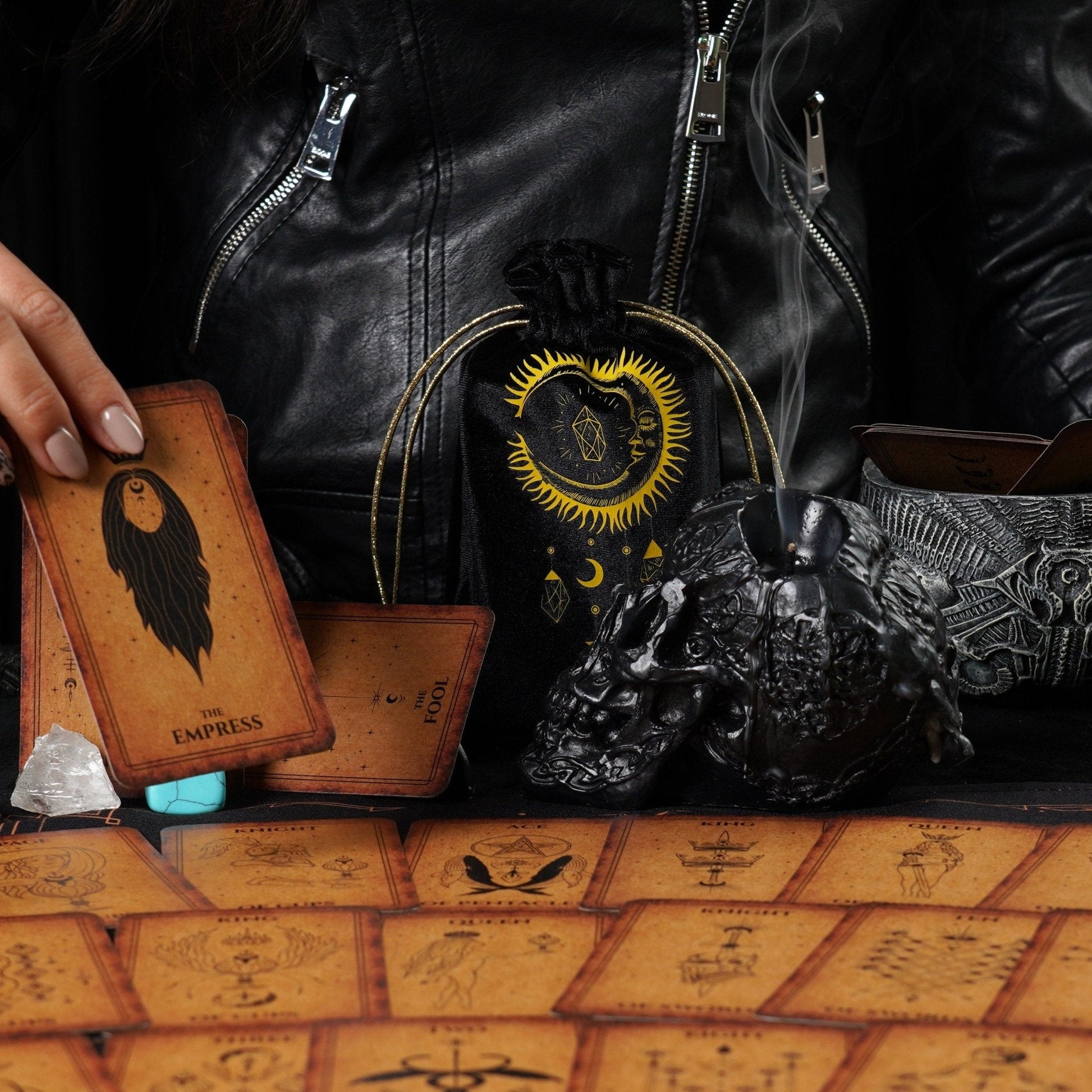 -Black&Gold Velvet Tarot Cards Bag,soft and durable✔